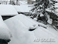 足場の雪は、ハーフブーツが埋もれるほどあります。